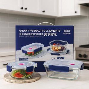 Premium 2-piece glass storage set with airtight lids – safe, stylish, and versatile for every kitchen.