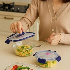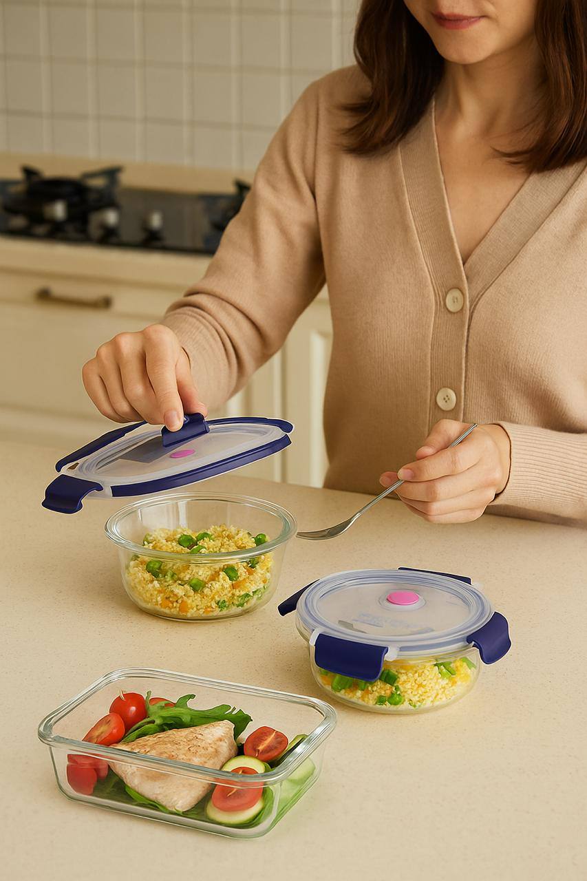 - Material: Borosilicate heat-resistant glass + silicone seal + BPA-free lids
