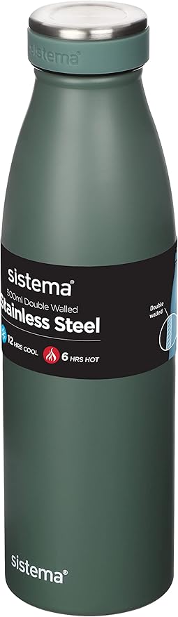 Sistema Hydrate Bottle 750ml & 500ml. This is a premium, double-wall vacuum-insulated stainless steel bottle from the trusted brand Sistema. Its key differentiator is the perfect blend of superior thermal performance (6h hot / 12h cold), a wide mouth for easy filling and cleaning, a modern screw-cap with stainless steel finish, and a palette of on-trend, vibrant colors that make it a standout accessory.