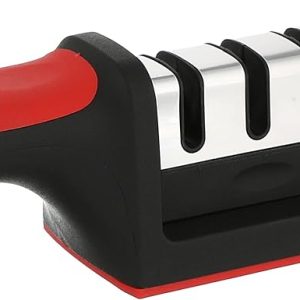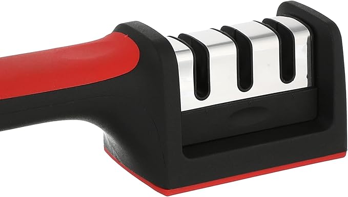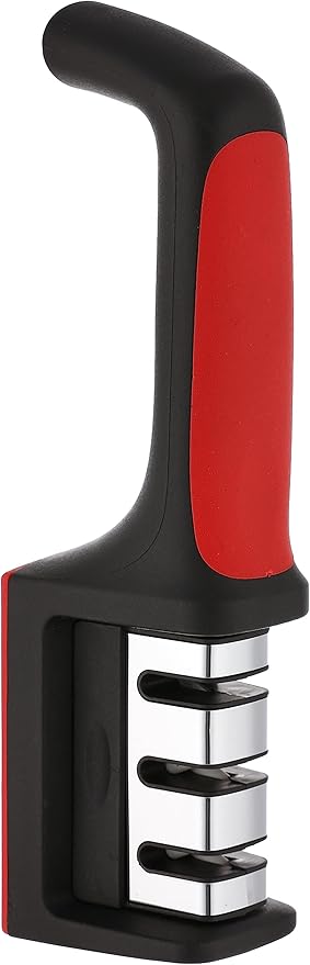 3 stage manual knife sharpener stainless steel black red with comfortable handle for safe easy sharpening مسن سكاكين يدوي 3 مراحل فولاذ مقاوم للصدأ أحمر أسود مع مقبض مريح لشحذ السكاكين بأمان وسرعة في المطبخ مسن سكاكين يدوي 3 مراحل فولاذ ...