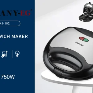 Upgrade your snack time with the Sokany Sandwich Maker KJ-102. With 750W of power, this compact appliance makes perfectly toasted sandwiches in just minutes. The non-stick heating plates ensure easy release and quick cleaning, while the heat-resistant handle and indicator lights provide safe, user-friendly operation. Its sleek design makes it ideal for any kitchen, whether at home, in dorms, or office pantries.